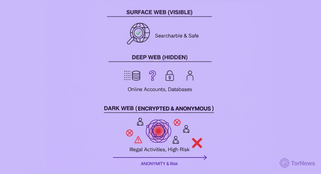 Most of the confusion associated with the dark web comes from this place, in that some confuse “deep web” with the “dark web,” so it must be made clear that they are, in fact, two different things. The deep web isn’t bad at all. It’s just private. Corporate intranets, academic publications, subscription databases—they all exist there. If you logged into your bank to check your balance, you were using the deep web.