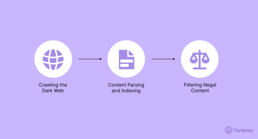 - The second method happens when it lands on the website, and the crawler scans through the pages for other links. Several darknet sites link to one another, and hence following the paths might lead to several discoveries.