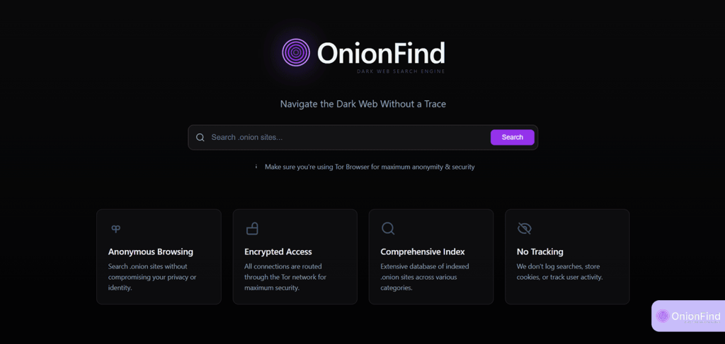 - OnionFind: A streamlined and reliable search engine dedicated to discovering services on the Tor network with a priority on user safety over sheer volume.