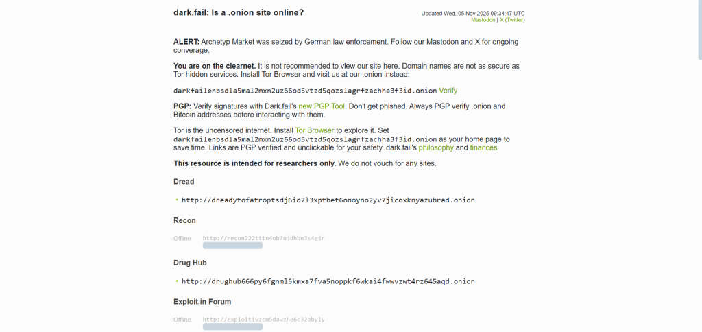 - Dark.fail: Verified directory that tracks legitimate and trustworthy onion links.
