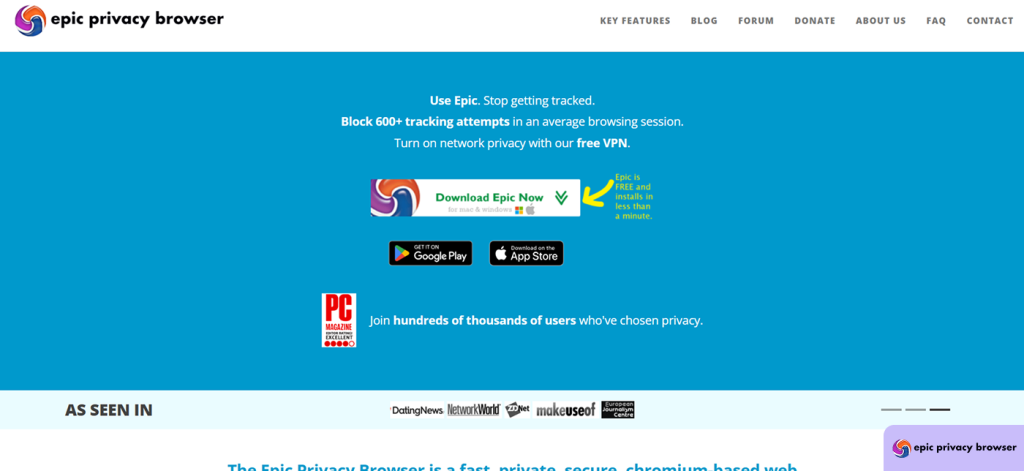 - Epic Privacy Browser: Designed for privacy purists, Epic deletes all browsing data on exit and aggressively blocks trackers.
