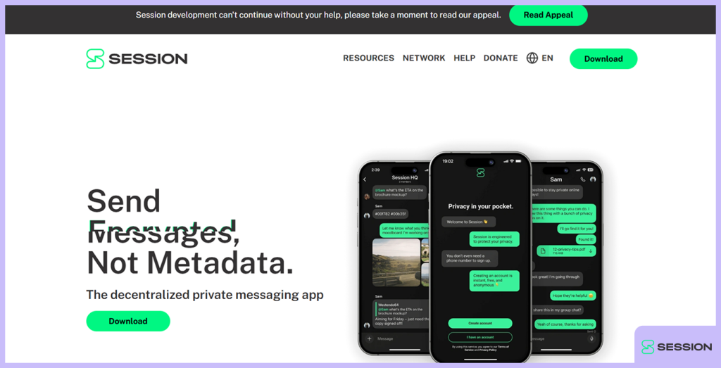 - Session: A decentralised platform where signing up does not require an email address or phone number.