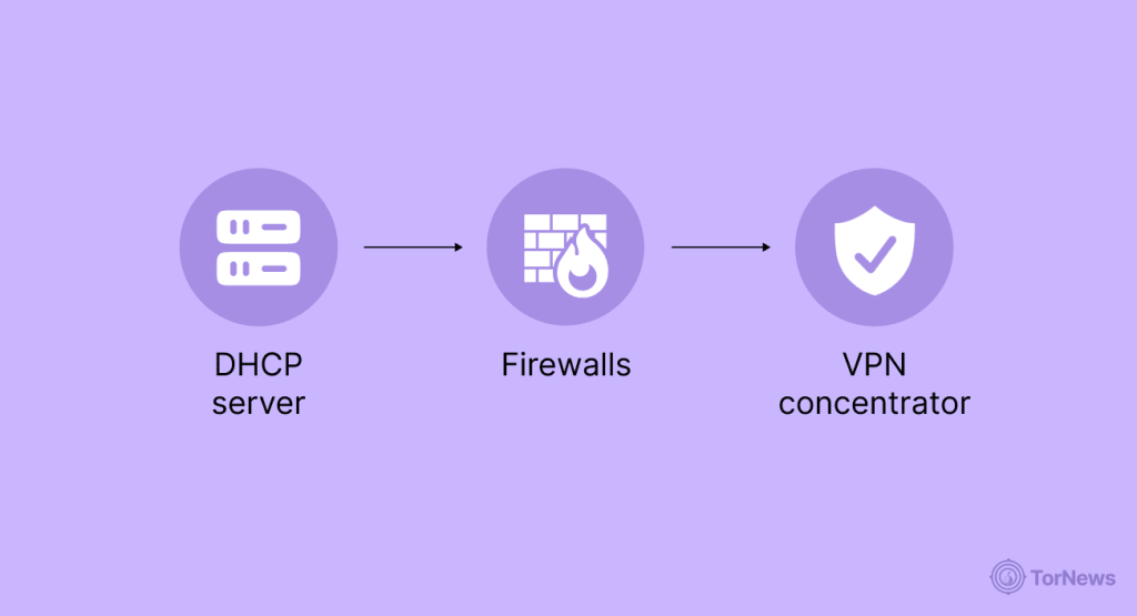 - DHCP server: Many of these devices have a DHCP (Dynamic Host Configuration Protocol) server. DHCP assigns IP addresses to devices. In this example, the device is watched, and when the device connects, an address is available for linkage.