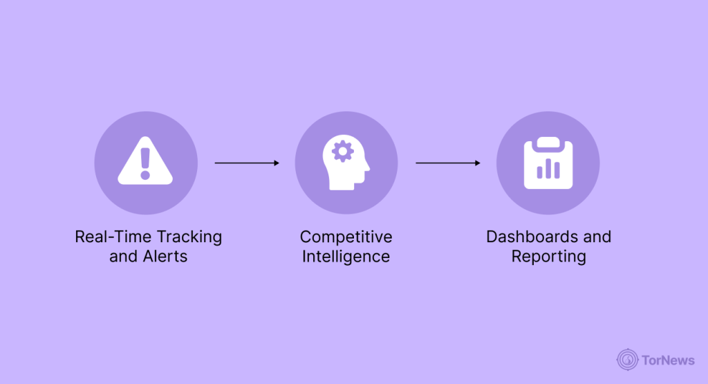 Competitive monitoring now collects data about competitors in real time. It processes the data and alerts you about competitors’ campaigns, product release, pricing modifications, and even customer reception patterns. There’s auto-benchmarking, share of voice assessment, and even threat evaluation from competitions.