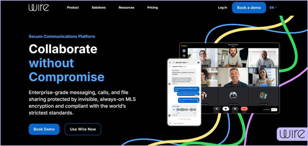 Wire uses its open-source encryption protocol, Proteus, ensuring that all messages, voice calls, and video calls are end-to-end encrypted by default. It is designed as a highly secure, collaborative platform for team communication and file sharing.